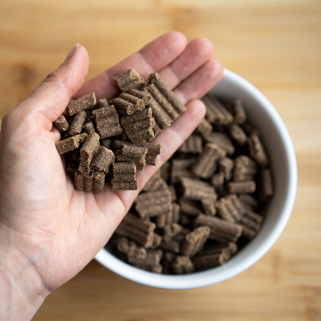 Het voedingsschema is slechts een richtlijn. De voedingsbehoefte is afhankelijk van de leeftijd, grootte en mate van de activiteit van de hond. Zorg altijd voor vers drinkwater en houd toezicht als de hond eet. Koel, droog en donker bewaren.